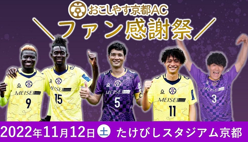 【11/12(土)10時~】「2022シーズンおこしやす京都ACファン感謝祭@たけびしスタジアム京都」開催のお知らせ