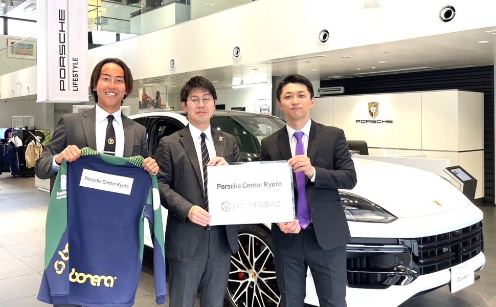 元々地域貢献に関心を持っており、地元京都の為に何か出来ることがあればと考えておりましたが、この度様々なご縁があって、おこしやす京都AC様とパートナーシップ契約を結ぶことになりました。 ポルシェは夢の塊です。成功者の憧れです。選手たちが上を目指す原動力になって、その背中をみた子どもたちが将来の夢を膨らませる。選手や子どもたちの活躍を弊社社員も間近で感じることができ心豊かになれる。なんて夢のある話でしょう!! 私自信もおこしやす京都ACの飛躍を楽しみにしています。末永くサポートできればと思っていますので、よろしくお願いいたします。