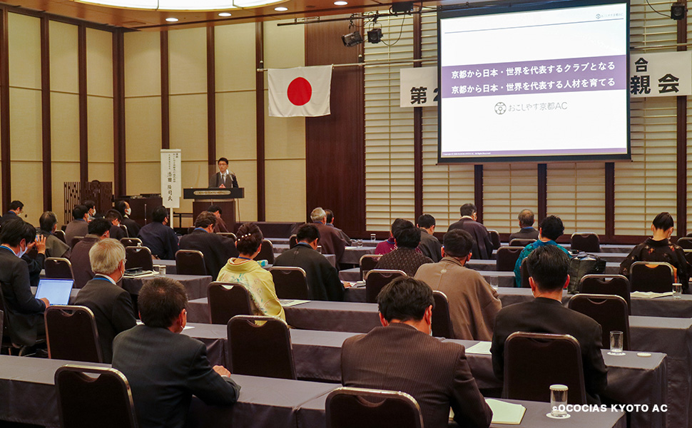 プロサッカークラブおこしやす京都ACが創る幸せな社会 ~スポーツの力で社会と産業を繋ぎ、新しい価値を創り出す~ というテーマでお話をさせて頂きました。