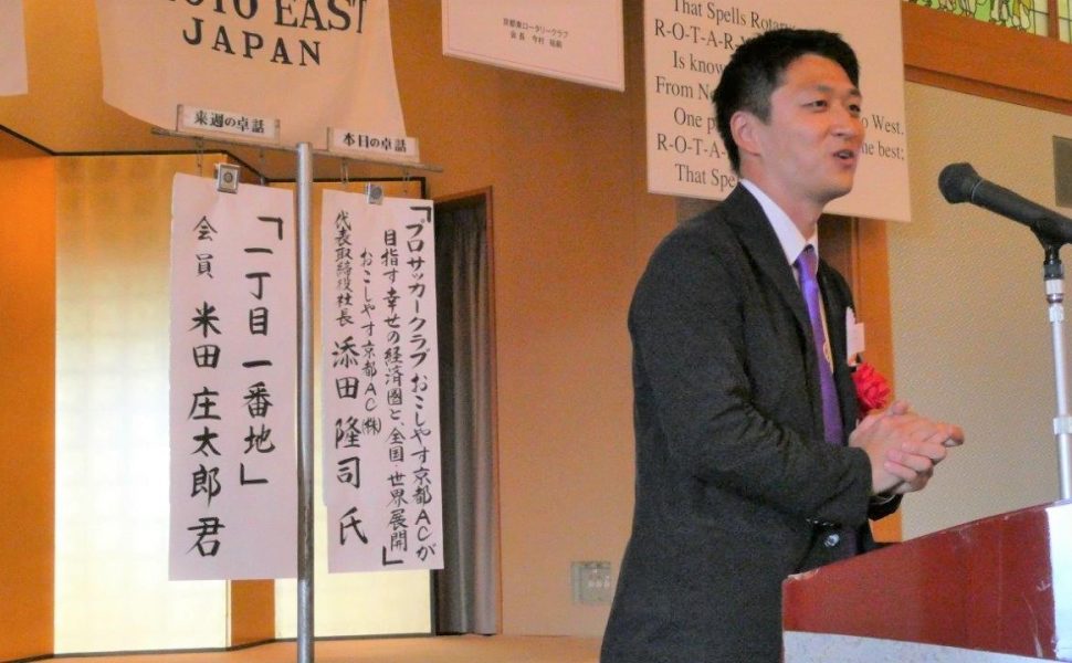 代表の添田が「京都東ロータリークラブ」様の例会でゲストスピーチをさせて頂きました