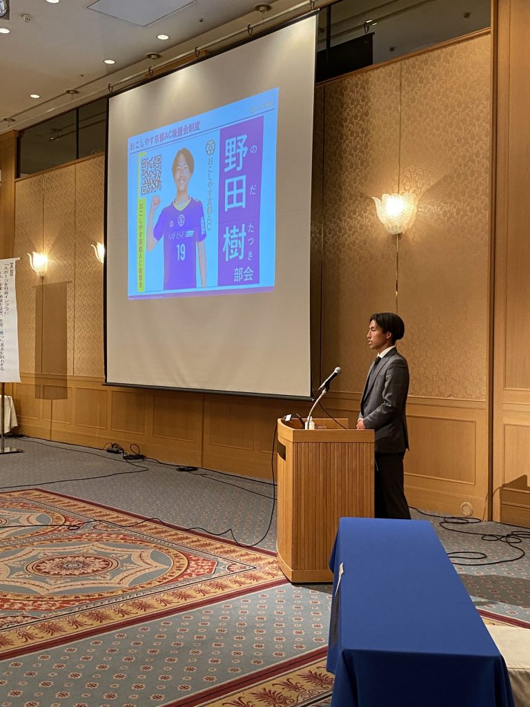 おこしやす京都ACというサッカークラブを通した地域とのつながり、プロスポーツクラブの持つ「人・企業」「世代」「場所」をつなぐ可能性の広がりなどについてお話させて頂きました。
