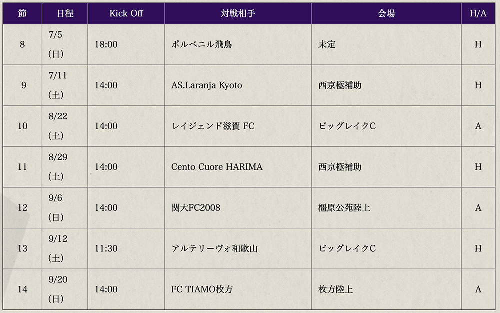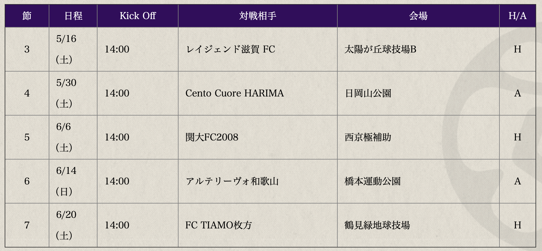 この度、第55回関西サッカーリーグの日程につきまして、第3節以降のスケジュールが決定いたしましたのでお知らせいたします。
