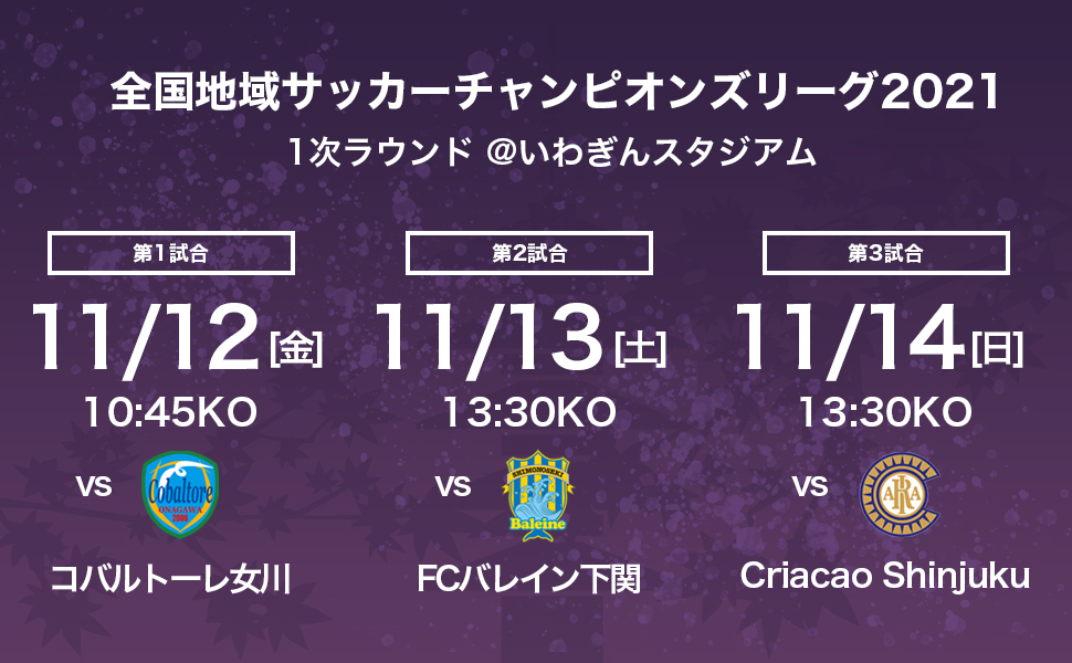 全国地域サッカーチャンピオンズリーグ2021 1次ラウンド 対戦スケジュールのお知らせ