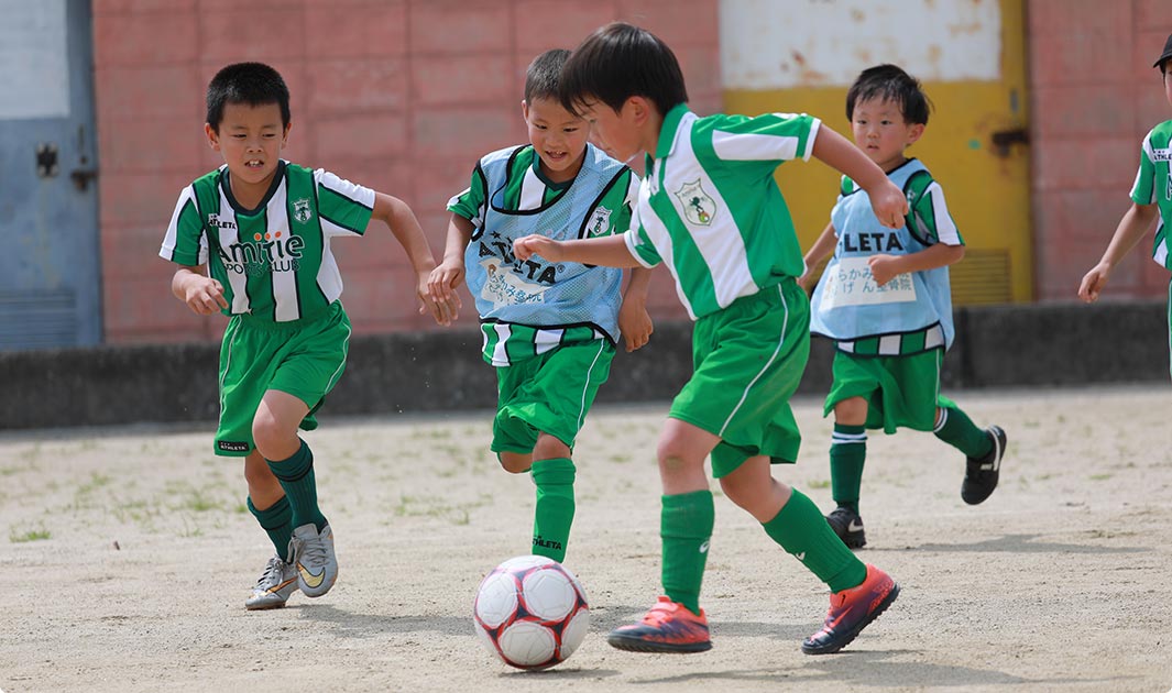 片足立ちなどもできるようになり、全身運動もなめらかになります。基礎技術の習得に適した時期になるのでスポーツとしての楽しさを感じてもらう指導を行います。